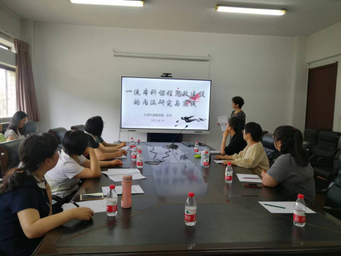 《文化自信视角下大学英语课程思政创新改革实施路径探索》项目主持人胡静副教授从研究背景及意义、研究目标及内容、研究重难点、研究方法、创新点、进度安排六大方面详细地对课题做了开题报告。同样是立足于思政教育,胡静副教授格外关注国内外相关研究背景及国际形势,视野开阔又有忧患意识,希望通过将思政教育融入大学英语课程而提高学生跨文化能力和思辨能力、深化学生的“家国情怀”和“人文素养”、实现知识传授和价值引领相融合、强化学生文化自信,从而进一步为使学生成为实现中华民族伟大复兴、在国际舞台维护中国国家形象和利益的中坚力量提供教育保障。