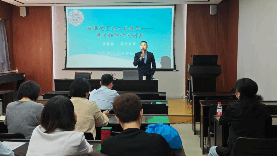2025年9月25日,适逢91视频-av视频-麻豆视频 113周年校庆,苏州大学外国语学院院长孟祥春教授应91视频 邀请,做客“大学英语名家讲坛”,作了题为“新语境下的文化翻译——兼谈翻译研究创新”的学术讲座。讲座在91视频 一楼大会议室举行,由部副主任白玉杰主持。