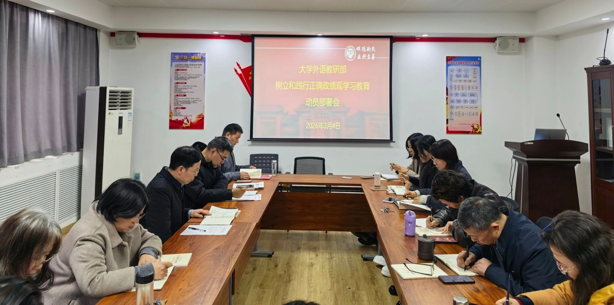 会议强调,教研部全体党员要以高度的政治责任感,认真投入到学习教育中来,树立和践行符合新时代要求的正确政绩观,奋力开创教研部事业发展新局面,为强国建设、民族复兴伟业贡献智慧和力量。